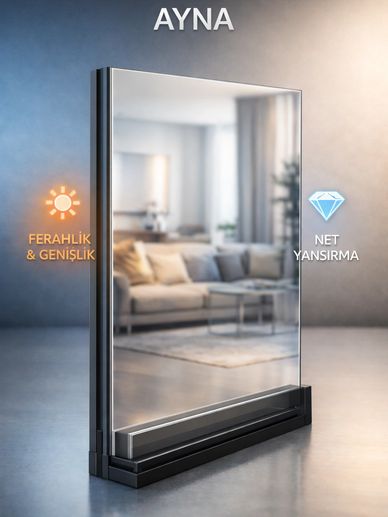 Ayna, bulunduğu mekâna ferahlık ve derinlik kazandıran, dekoratif ve fonksiyonel bir cam çözümüdür. Işığı yansıtma özelliği sayesinde alanları daha geniş ve aydınlık gösterir.